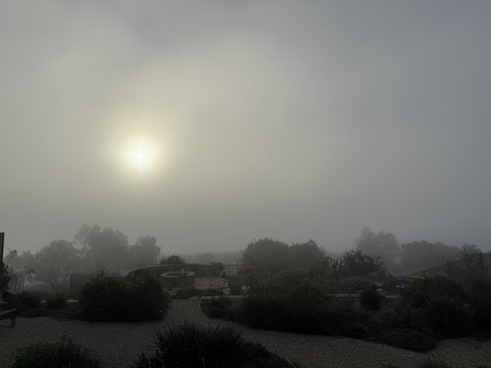 Today is the last day to prepare for the sosltice and we are socked in with very thick fog. No way will it clear before sunrise. It didn't. I did review the alignment and made a few tweaks. The forecast for tomorrow calls for "patchy morning fog".